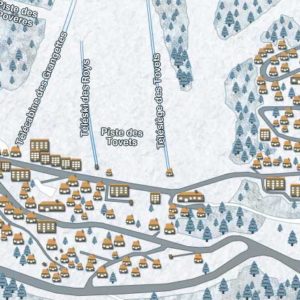 En este caso, alguien diseña los mapas de los diferentes niveles que componen Courchevel: 1300 Le Praz, 1550 Village, 1650 Moriond y 1850. Estos mapas aportan al usuario una visual amplia sobre la estructura y disposición de la estación, y al mismo tiempo la agencia de viajes los utiliza para señalar los hoteles, apartamentos y villas en alquiler, ofreciendo así un servicio que no lo ofrece ninguna otra agencia de viajes de la estación.